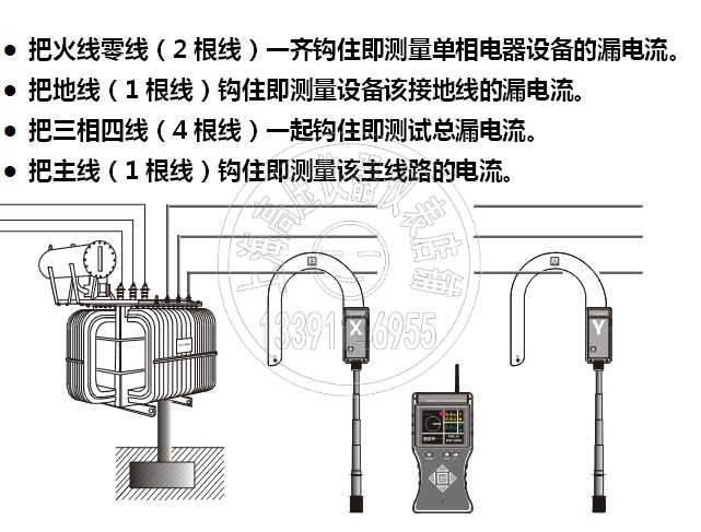 320B型的X探測(cè)器具有高低壓電流、漏電流測(cè)試功能,電流測(cè)量范圍為0~20000A,同時(shí)滿足核相、電流、漏電流、相位、相序、驗(yàn)電測(cè)試;也可以用于高壓線纜漏電巡查:將具有測(cè)試電流功能的X探測(cè)器鉤在電纜上,沿線巡查,若接收器由有較大電流顯示突變?yōu)楹苄‰娏骰驘o(wú)電流顯示,該點(diǎn)即為電纜漏電點(diǎn)。